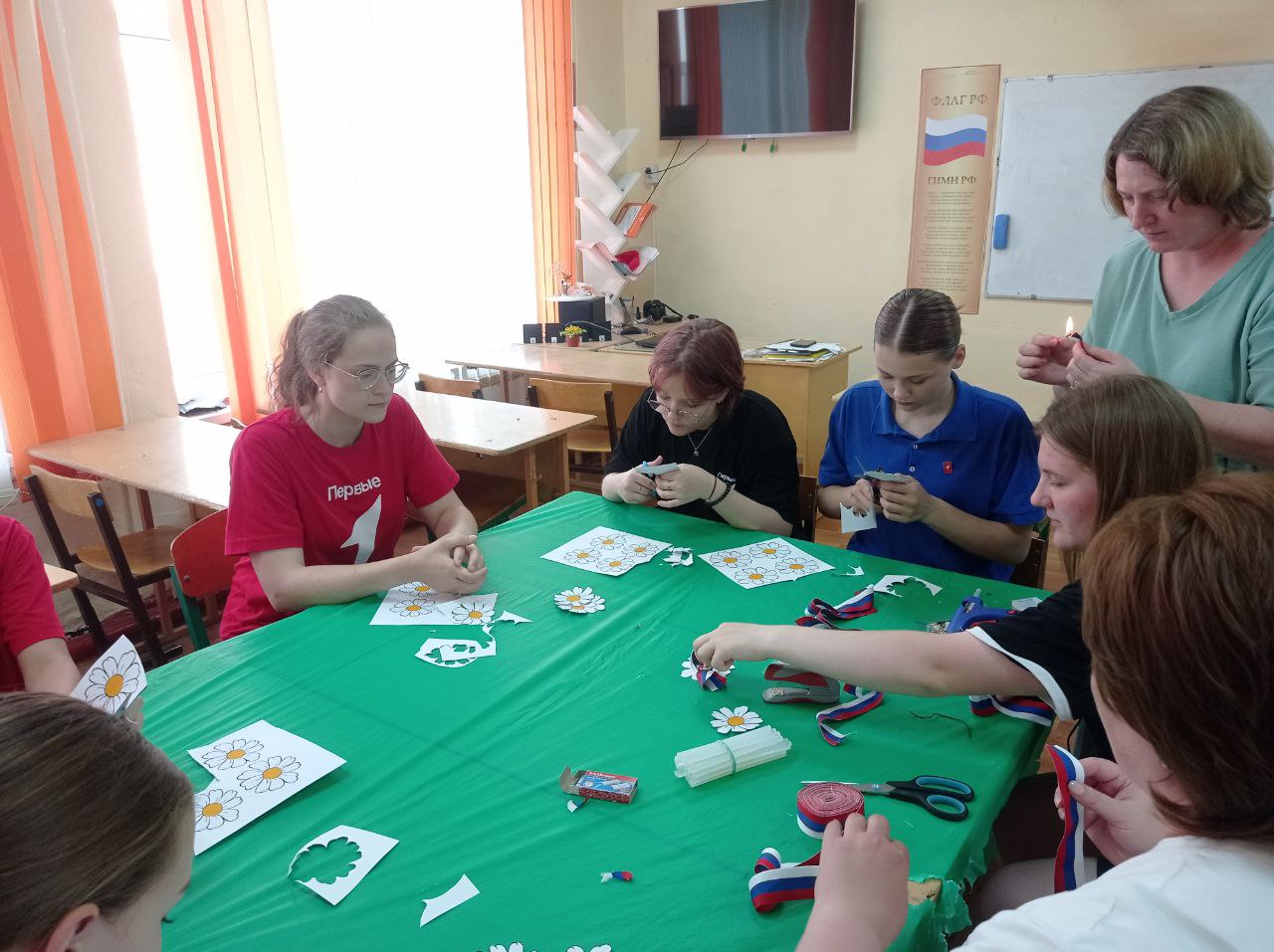 Команда первичного отделения, в преддверии Дня России, организовала удивительную творческую мастерскую «Россия в моём сердце». Здесь были созданы изысканные броши в стиле триколор с деликатными ромашками, которые с радостью были вручены жителям посёлка и участникам мероприятия.