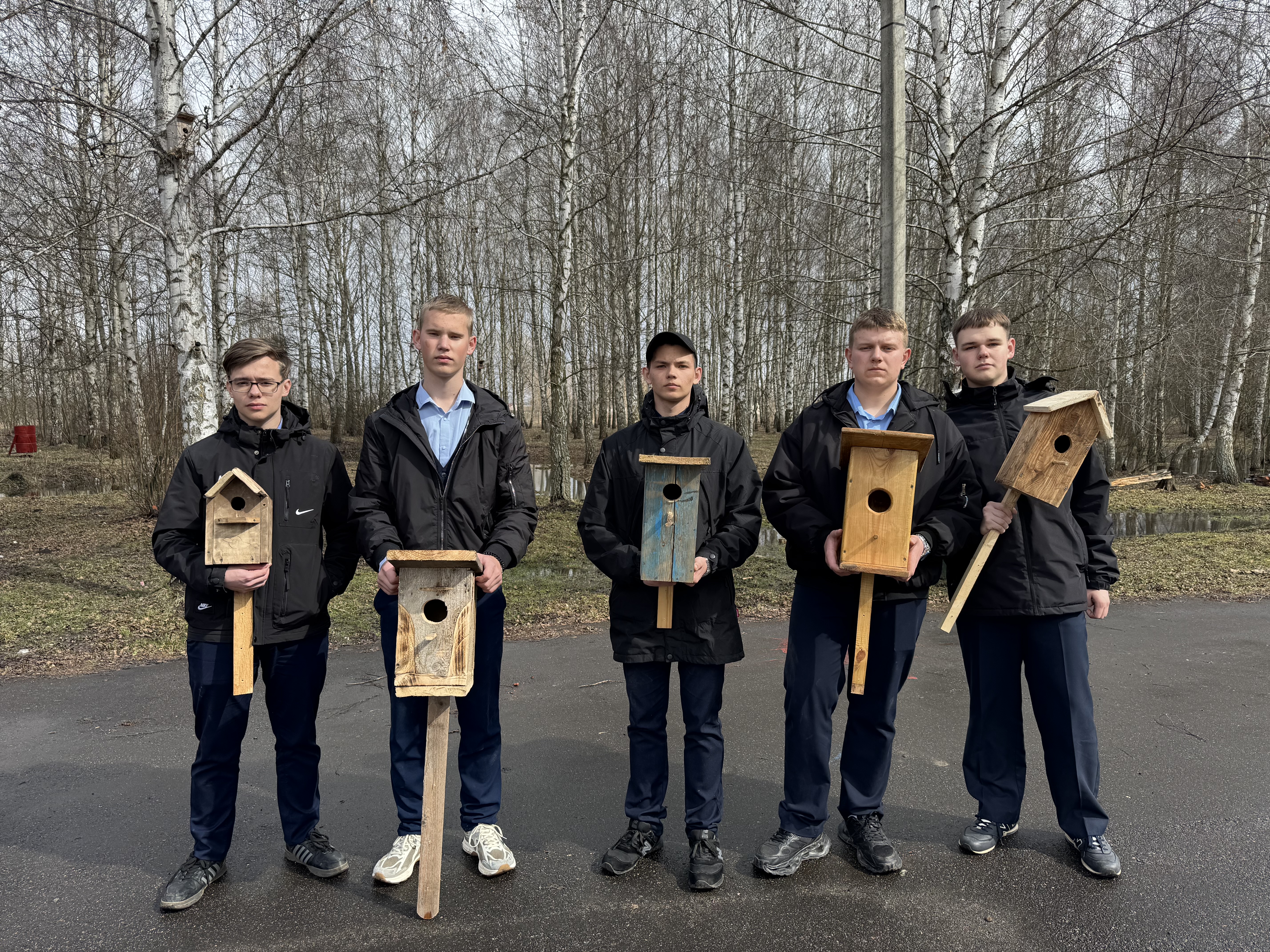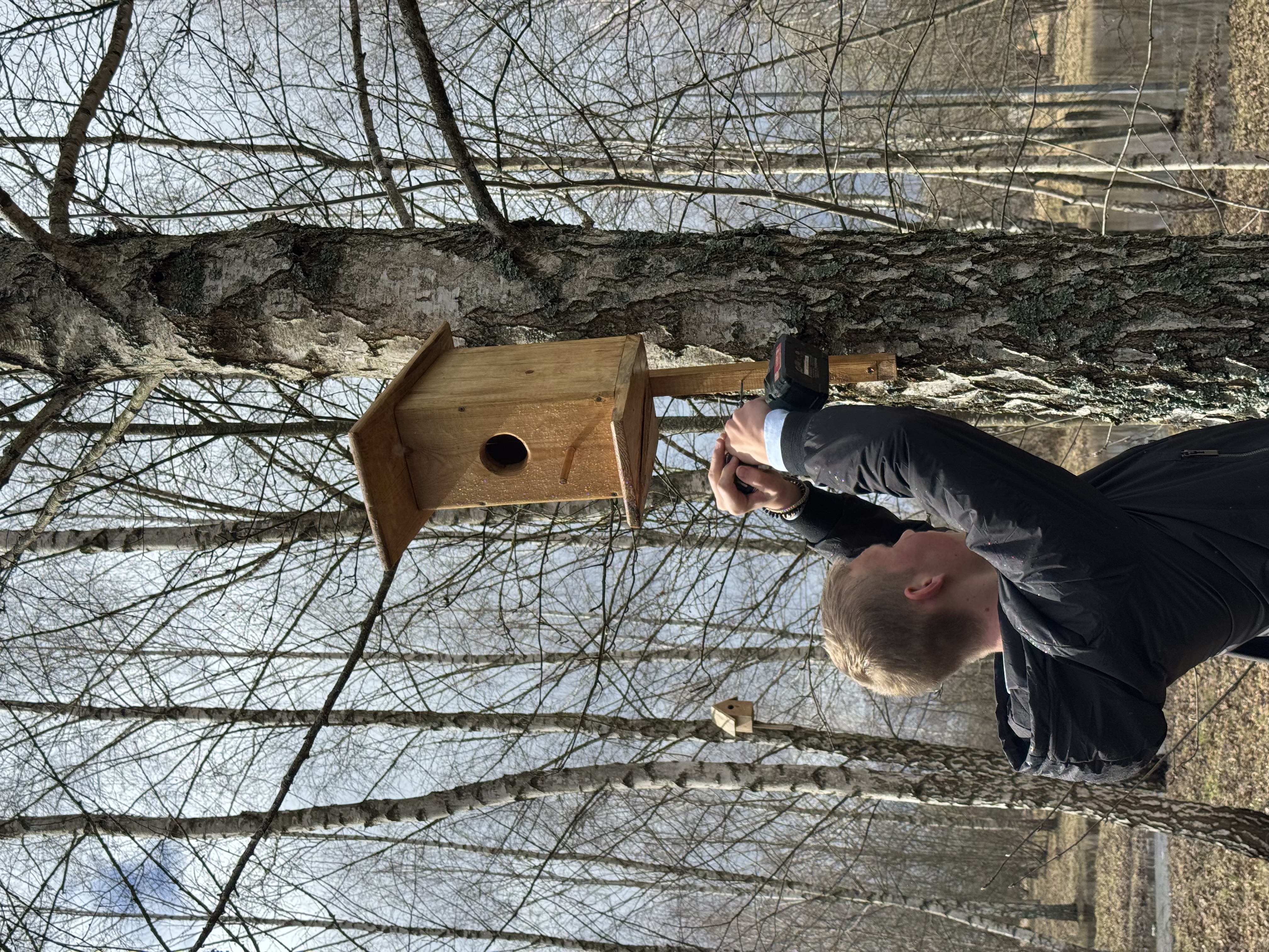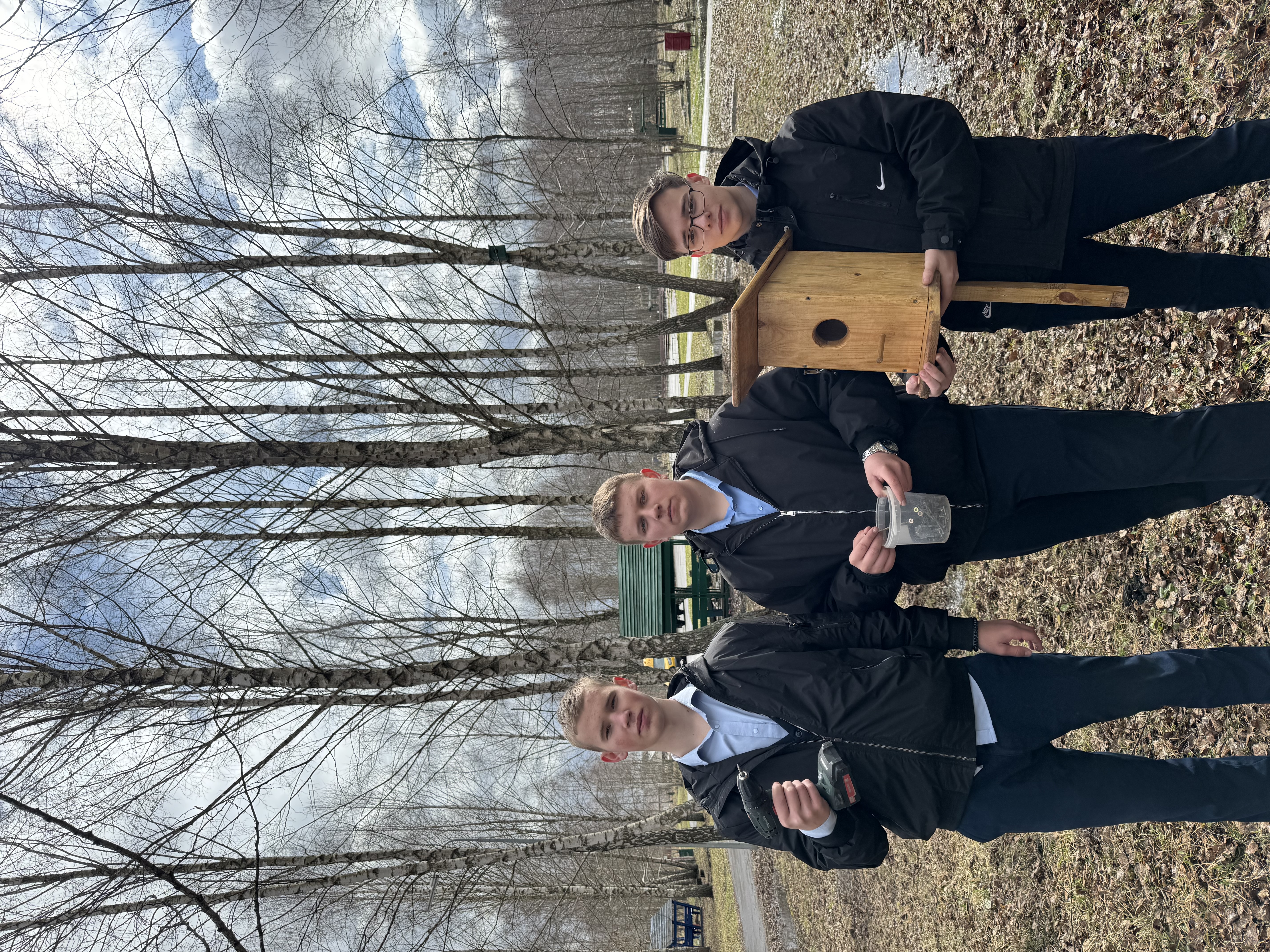 Сделанные с душой скворечники были торжественно переданы старшеклассникам, которые с радостью приняли эстафету доброты. Старшеклассники, ловко орудуя инструментами, развешивали скворечники на крепких ветвях деревьев. Каждый установленный домик – это маленький вклад в сохранение природы.