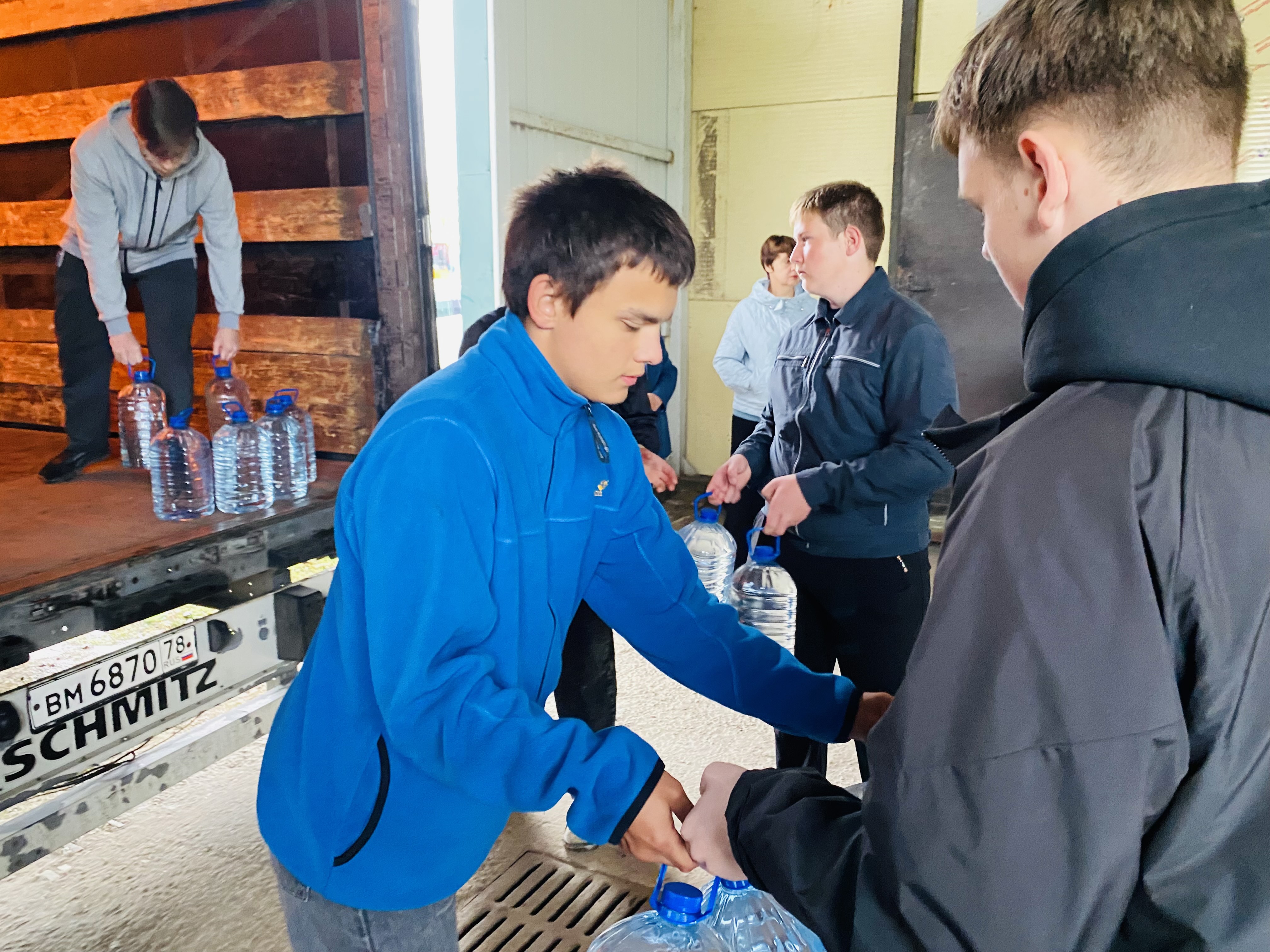 Сегодня, 24 сентября, учащиеся 10-11 классов оказали помощь в погрузке питьевой воды бойцам СВО.