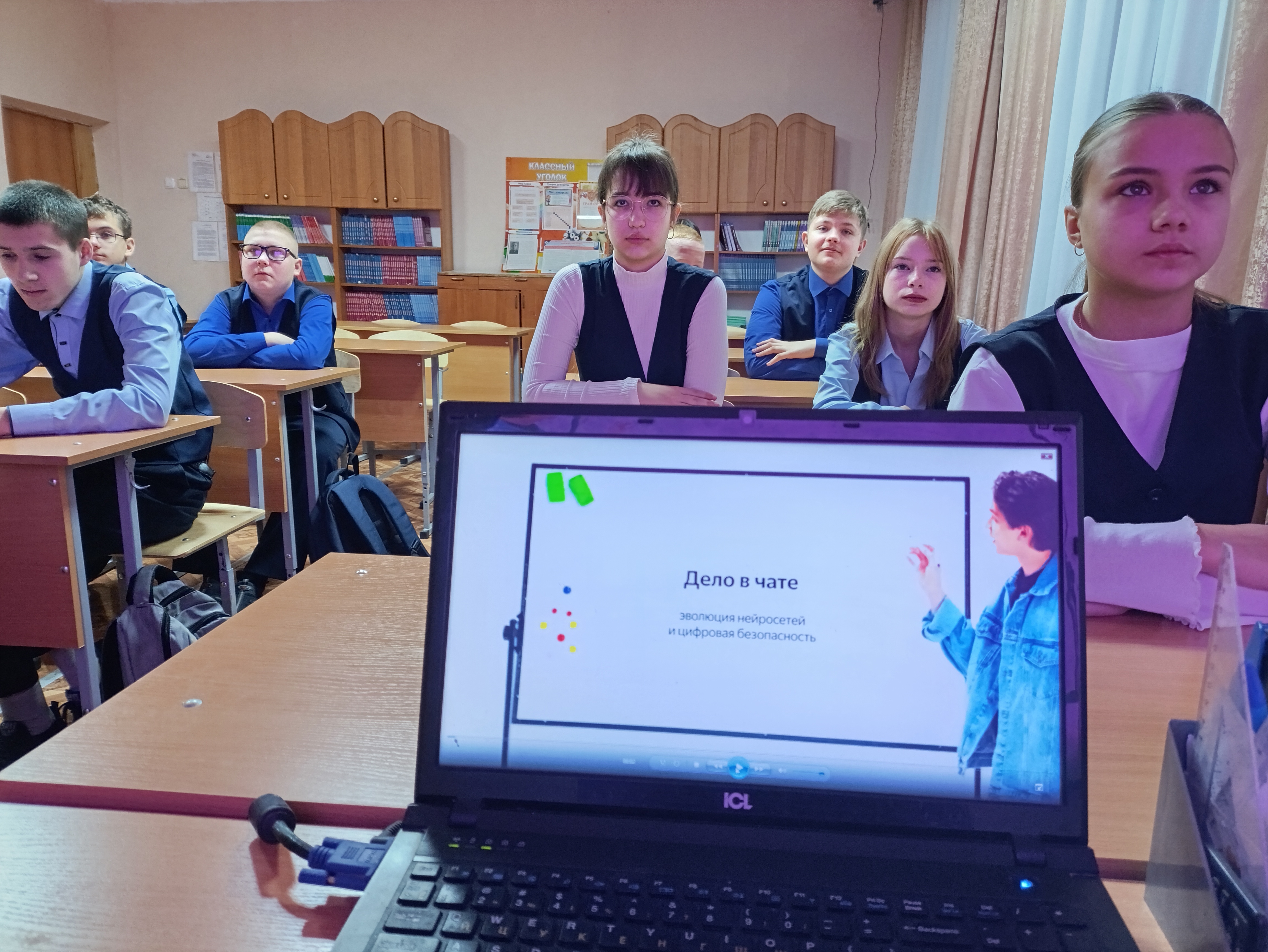 В 8 «б» классе прошел увлекательный «Урок цифры» на тему "Дело в чате: эволюция нейросетей и цифровая безопасность".