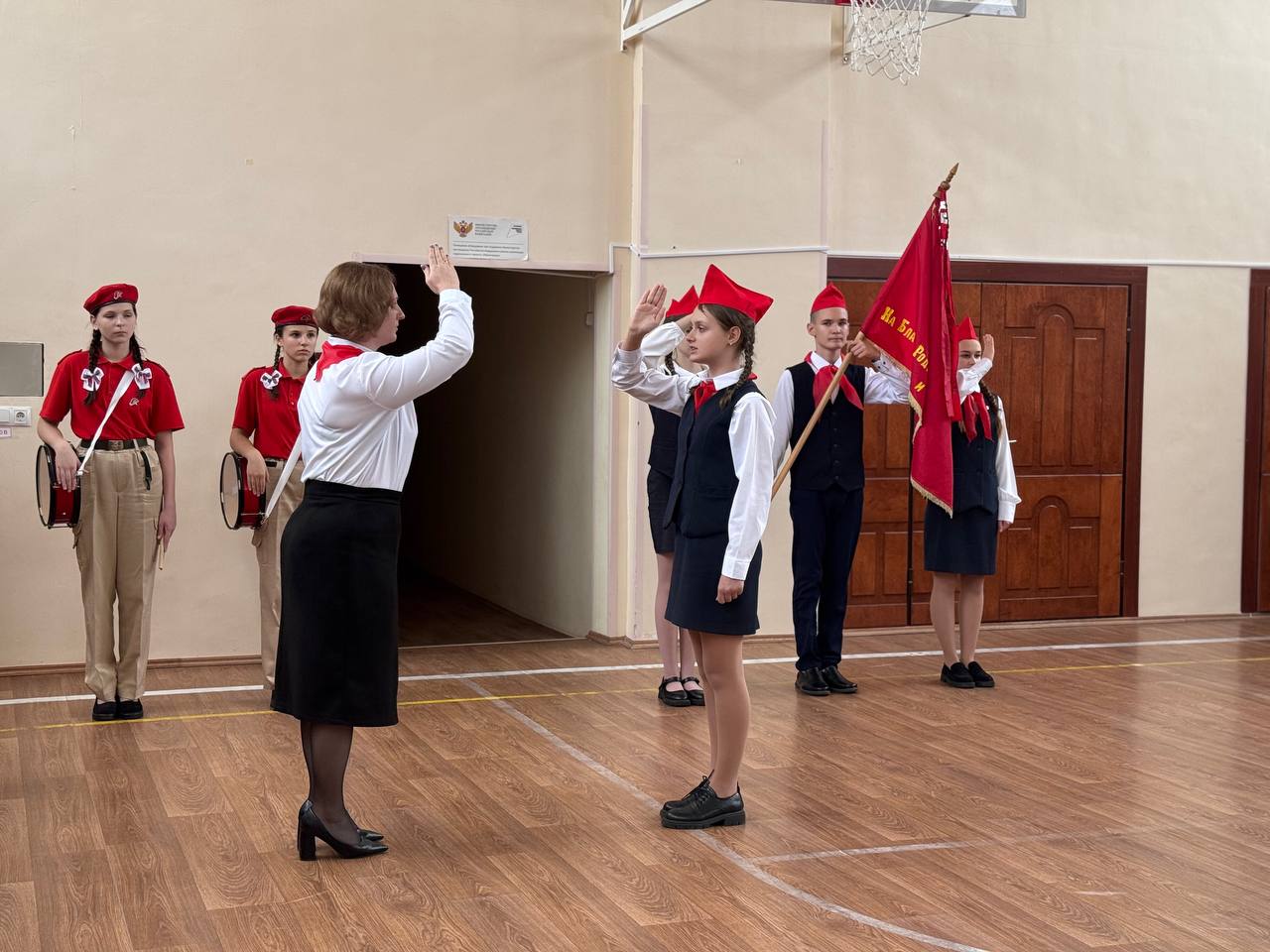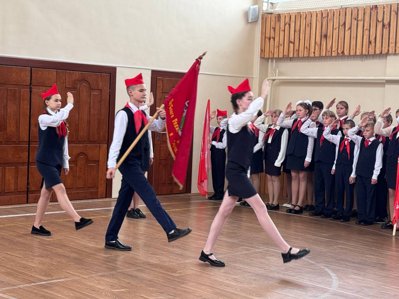 На сборе присутствовали: директор С. Н. Нестерова, заместитель директора Н.А. Моисеева, классные руководители 5-7 классов. Ведущими сбора стали старшая вожатая Бодрова М.А. и пионеры Малышева Софья и Анкудинов Михаил. Торжественный сбор начался с выноса пионерского знамени. Командиры отрядов: Маланин Антон, Анкудинова Татьяна, Тоноян Соня, Куликова Валерия, Ланин Степан, Вуколова Надежда, сдали рапорт председателю совета дружины Карасёвой Анастасии. Старшая вожатая приняла рапорт у председателя дружины.