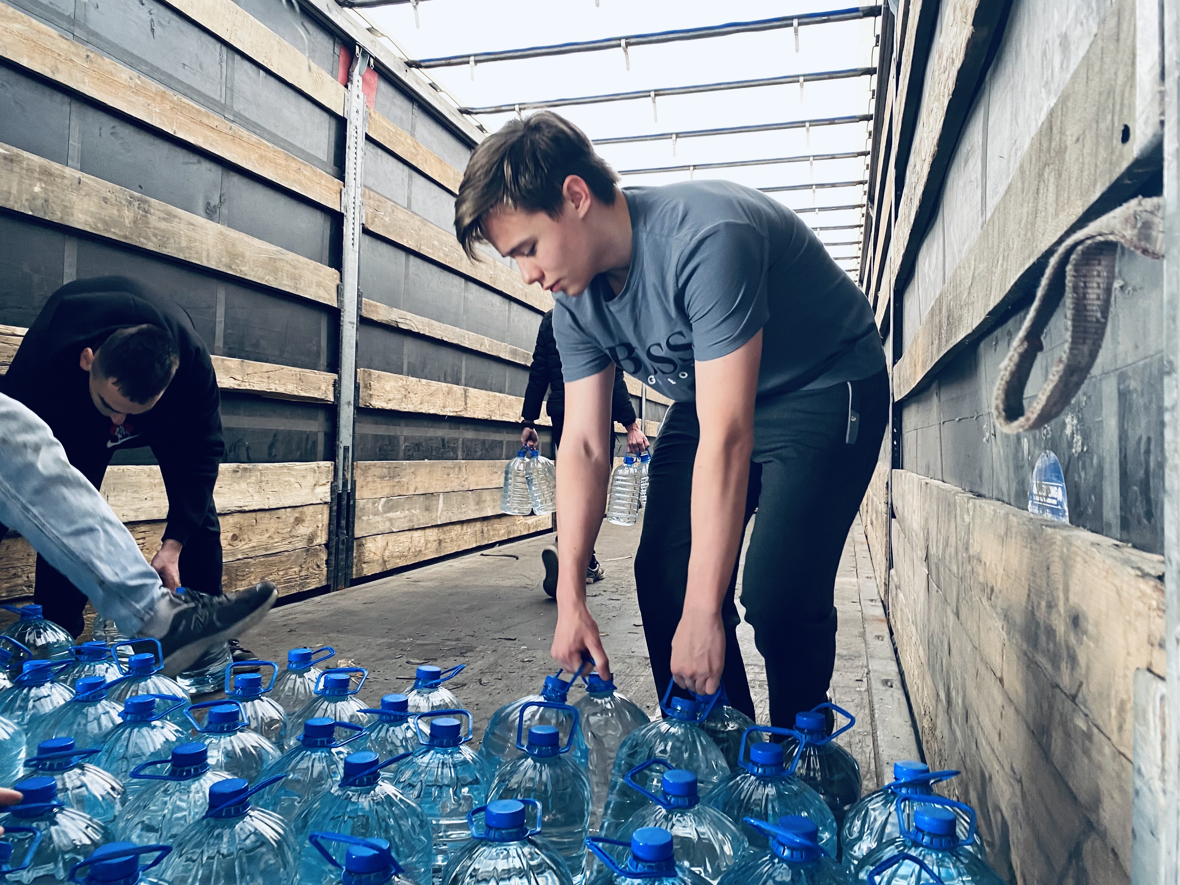 Учащиеся 10,11 классов приняли участие в погрузке питьевой воды для участников СВО.