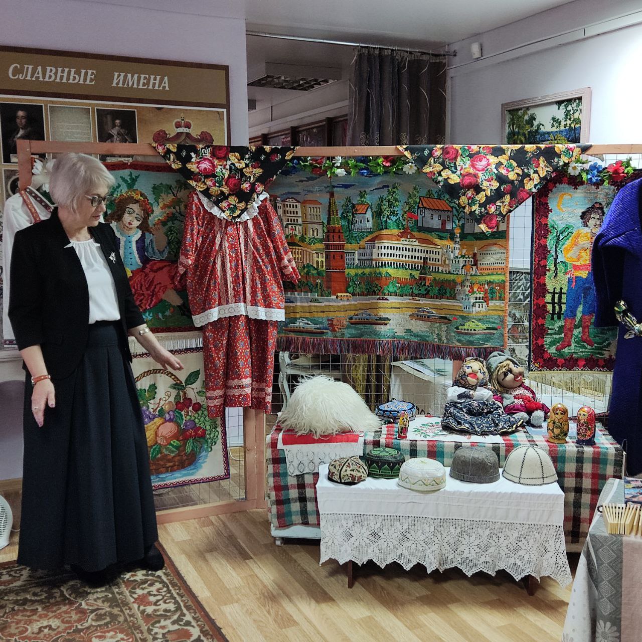 2.Экскурсию по предметной выставке «Марафон культур» провела директор музея Матюхина Т.В., она рассказала о настоящем калейдоскопе этнографических находок, бережно собранных и представленных публике.